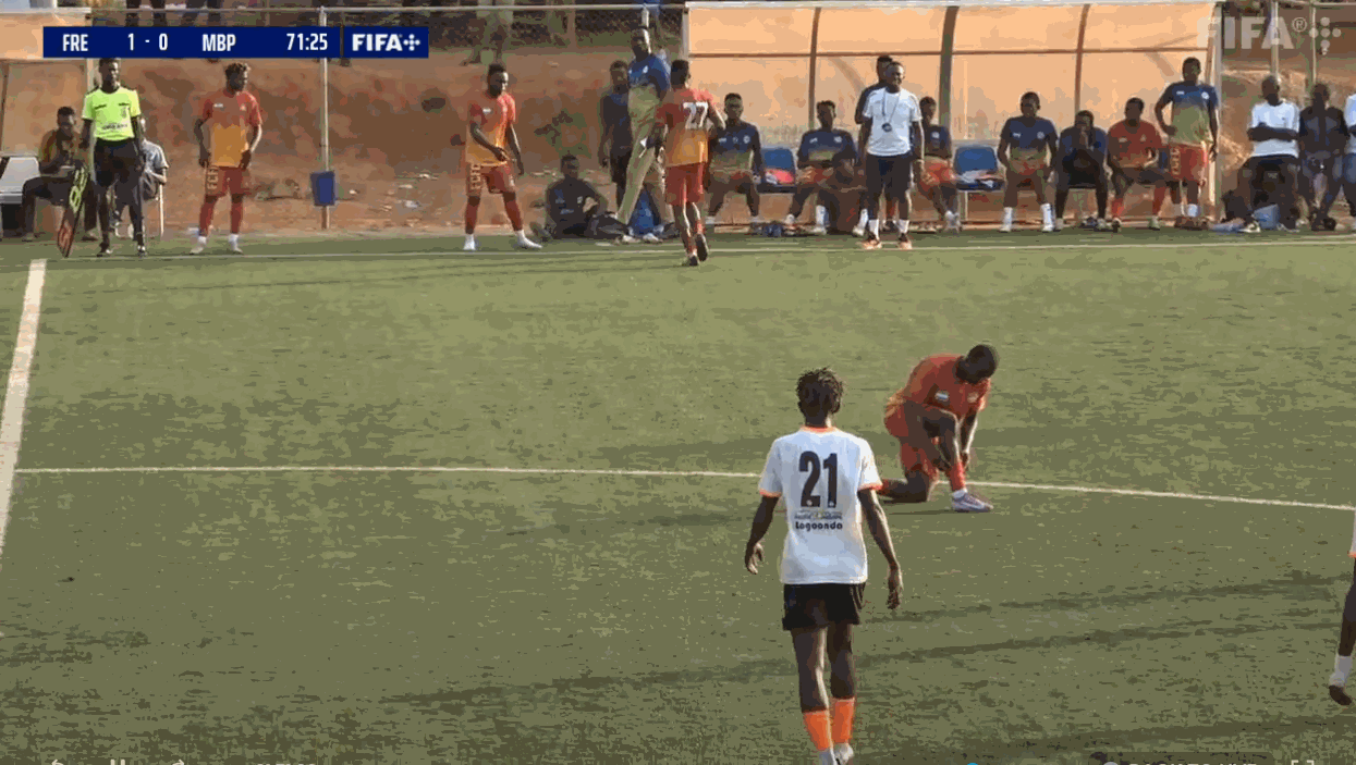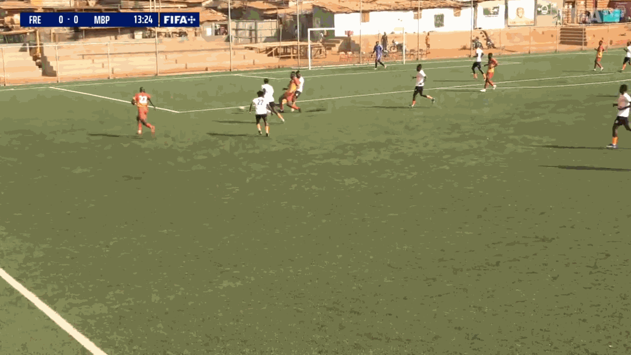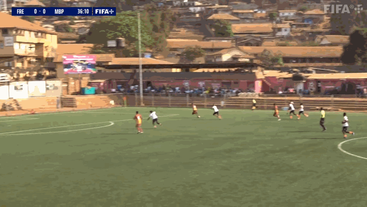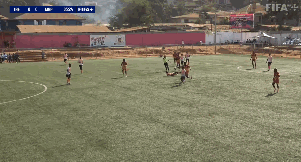 Prima occasione dei padroni di casa del Freetown (in arancione), servito in area la punta Moses Kamara, tiro fiacco.